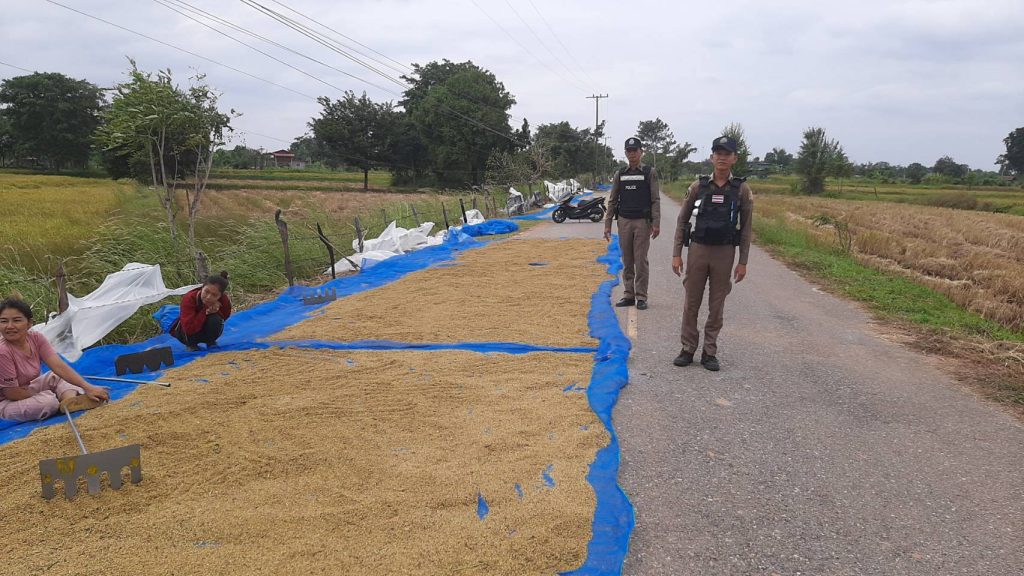 ส.ต.อ.ชาญวิทย์ พิมพ์ภักดี ได้ออกตรวจประชาสัมพันธ์ ให้ชาวบ้านทีตากข้าวบนถนนเพื่อป้องกันเหตุอันตรายจากผู้สัณจรไปมา บ้านตลาดม่วง บ้านหนองเรือ บ้านหัวสระ ต.หนองเรือ