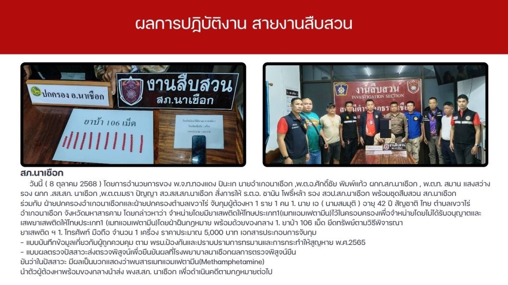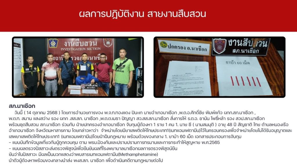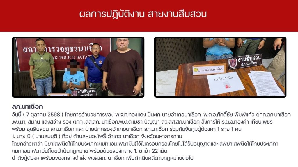 ผลการปฏิบัติงาน สายงานสืบสวน