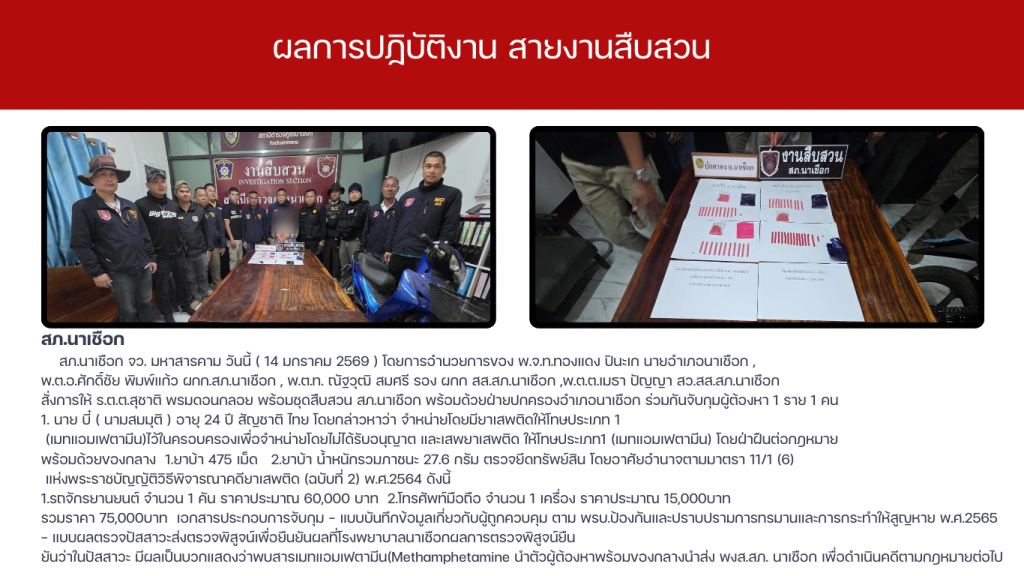 ผลการปฏิบัติงาน สายงานสืบสวน