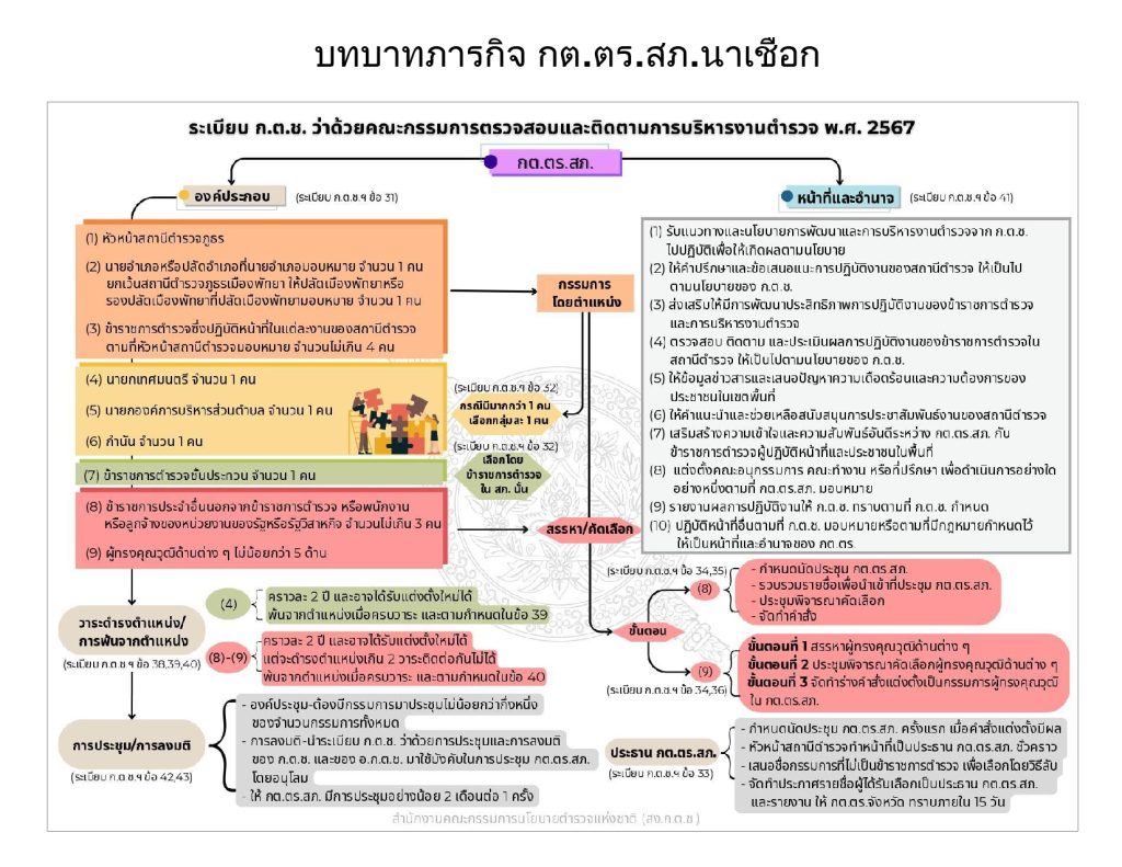 4. ตรวจสอบ ติดตาม และประเมินผลการปฏิบัติงานของข้าราชการตำรวจในสถานีตำรวจ ให้เป็นไปตามนโยบาย ก.ต.ช.